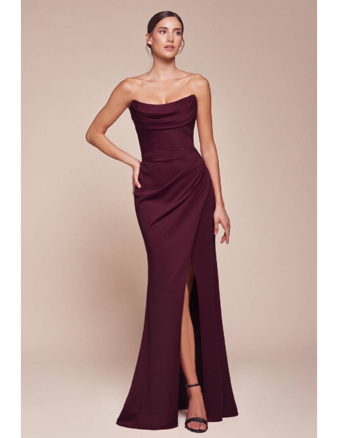 Elegant strapless dress featuring a bateau neckline and a structured bodice. The gathered waist elegantly transitions into layers, creating a refined silhouette. Ideal for bridesmaids or wedding guests, this dress ensures a sophisticated and enchanting look for any special occasion.