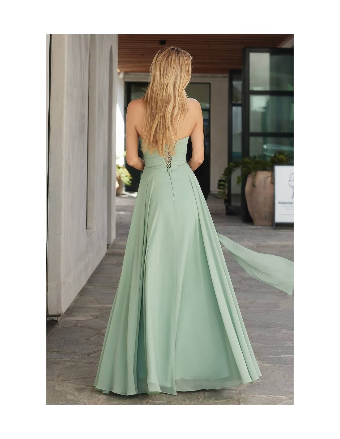 Elegant dress with strapless sweetheart neckline, fitted bodice with laces on the back, flowing full skirt, the scarf as an accessory for an extra touch to highlight the wearer's refinement.