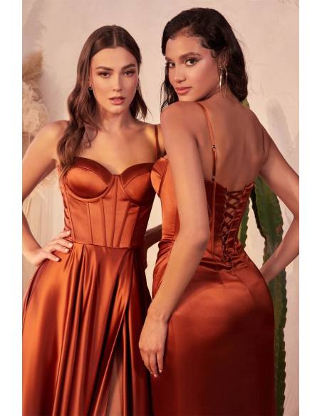 Abito meraviglioso non passerà mai di moda. La sua silhouette a trapezio in raso è divinamente morbida al tatto. Le spalline sottili offrono una delicata femminilità , il corpetto a corsetto con stecche offre un look sorprendente e sofisticato. Aggiunge un tocco di fascino con lo spacco sulla gamba.