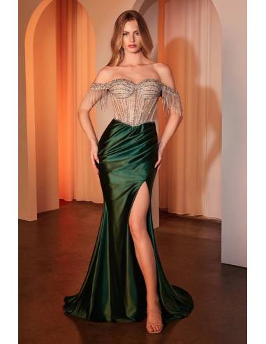 Splendido abito in raso decorato. Perfetto per ogni occasione speciale,ha silhouette aderente che valorizzerà la tua figura.Lo spacco sulla gamba aggiunge un tocco audace,ha la vita arricciata e la scollatura a cuore con spalle scoperte che slanciano la figura.Il corpetto decorato scintillante con frange e spalle scoperte attireranno l'attenzione con la loro delicatezza e raffinatezza. Se partecipi a un galà, o fai una sfllata sul red carpet o festeggi il tuo compleanno quest'abito sarà la scelta perfetta.