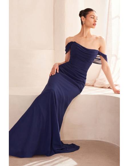 La grazia e l'eleganza di questo abito a sirena, caratterizzato da una spendita scollatura drappeggiata con spalle scoperte. Il corpetto e la vita arricciati creano una silhouette armoniosa, mentre la schiena a corsetto con lacci assicura una vestibilità perfetta. Puoi partecipare ad un matrimonio, o fare da damigella d'onore ,oppure partecipare ad un evento formale, questo abito risalta la tua naturale sofisticatezza.
