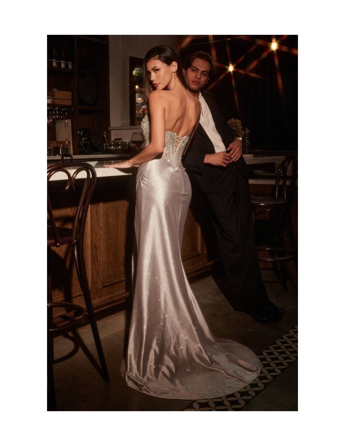 Abito aderente senza spalline con scollatura dècolletè e corpetto decorato che irradia eleganza. La gonna in raso glitterato e l'elegante spacco sulla gamba, slancia con grazia la silhouette, esaltando l'insieme. Perfetto per il tuo diciottesimo, per eventi formali o in abito da sera, questo stile ti offre raffinatezza senza tempo, con un tocco di brillantezza.