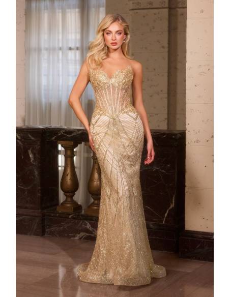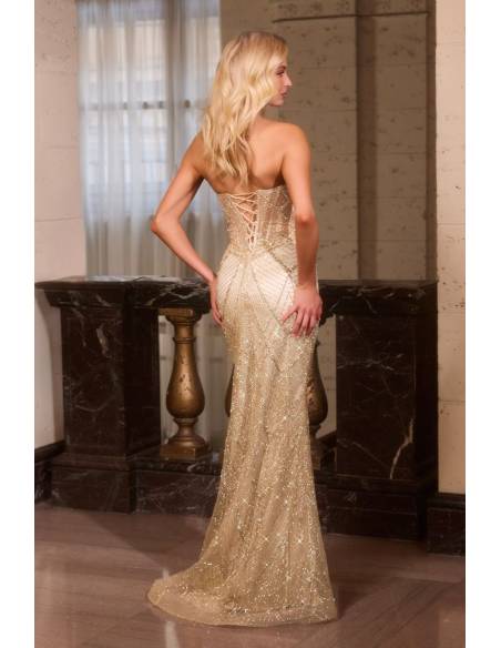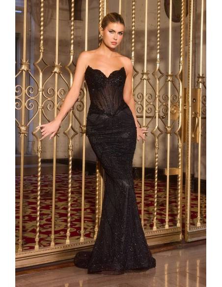 Cattura l'attenzione con la silhoulette di questo abito  aderente e scintillante ,la scollatura a cuore senza spalline con il corpetto impreziosito da paillettes che si fonde armoniosamente con tutta la sua lunghezza.
