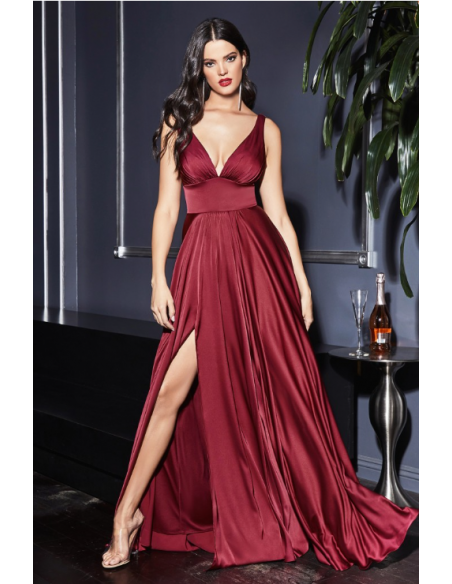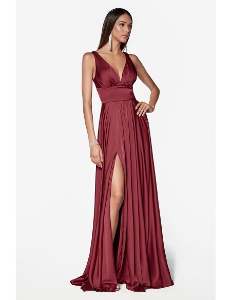Abito a trapezio presenta una profonda scollatura a V e una vita stile impero, splendidamente realizzato in morbido raso. Il corpetto aderente si trasforma in una gonna elegantemente arricciata, creando una silhouette accattivante. Questo best seller è ideale per damigelle, invitati a matrimoni o eventi formali, ed è elegante e senza tempo.